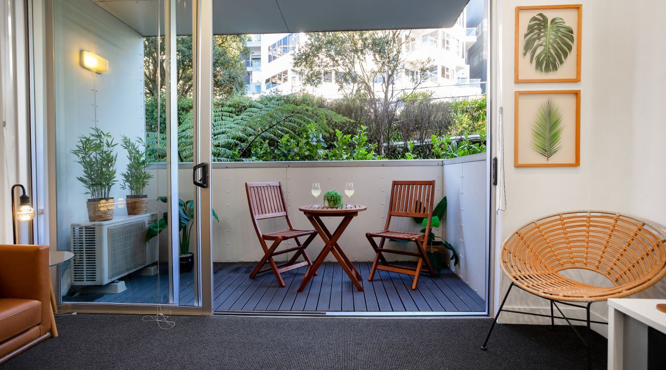 The green space outside of the apartment sets the tone for our apartment, separating you from the hustle and bustle of city life, and maximising your relaxation time despite the city proximity. Easy on the eye, and providing privacy, the garden adds a special touch to this urban space. The apartment has been recently renovated and is furnished to a very high standard with modern contemporary furniture and fittings. High ceilings and an abundance of natural light through the floor-to-ceiling ranch sliders make this a light and airy apartment.