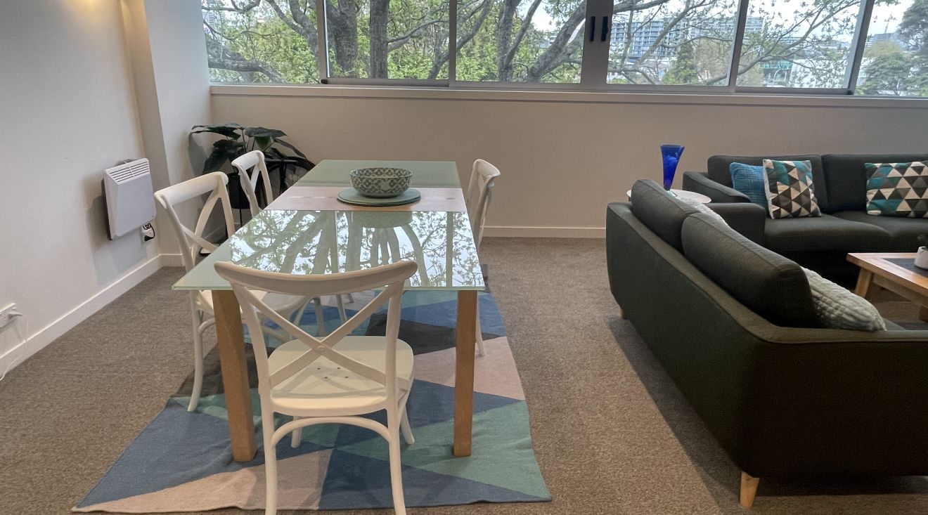 The lounge and both bedrooms offer views of the trees of Victoria park and/or the Auckland city skyline. A chairs on the balcony offer a great spot to enjoy your morning coffee.