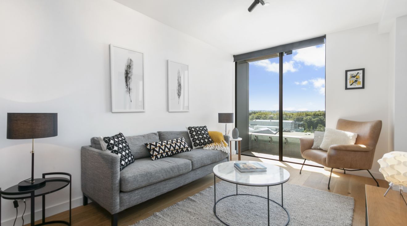 This apartment is located in an award-winning Sale St Residences apartment building with a north-facing sunny open plan living area & kitchen, 1 bedroom, 1 bathroom and separate office, along with a carpark with convenient lift access to your door.